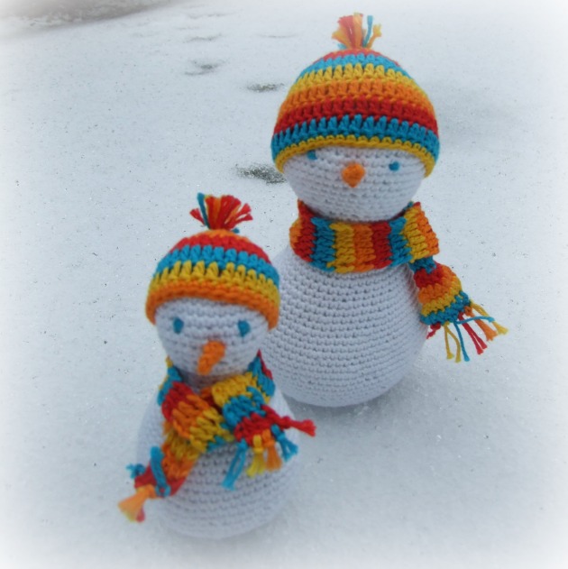 Dat kan met haakpatroon "Sneeuwpoppen groot en klein".